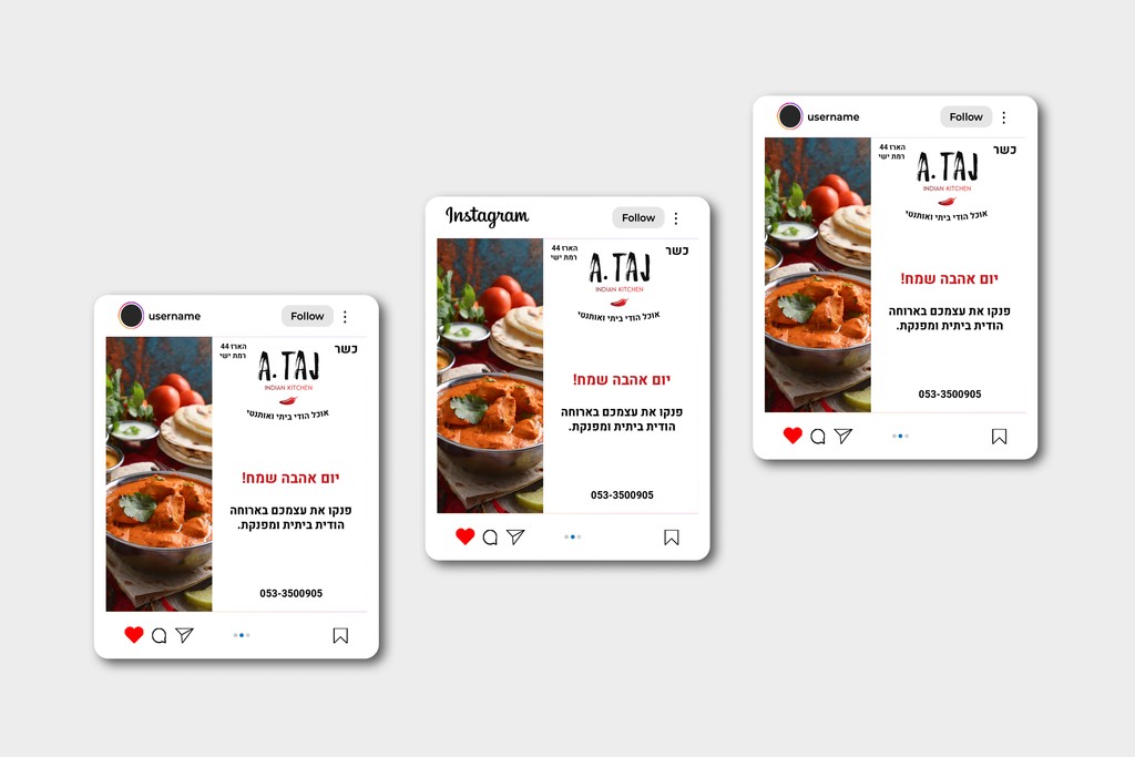 עשיתי מיתוג לעסק משפחתי של בעל ואישה שלפני הקרונה התעסקו בחינות הודיות, בעקבות הקורונה הם התחילו למכור אוכל מהבית ואחרי שנתיים שעבדו מהבית החליטו לפתוח מסעדה בלב רמת ישי. זאת מסעדה משפחתית, אותנטית וביתית, זאת מסעדה קטנה, חמה ומשפחתית מאוד ולכן הם רוצים ישאר מסעדה קטנה כדי שהם יוכלו תמיד להשאיר את האוכל מעוד ביתי ואותנטית.